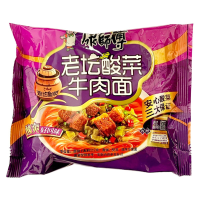 康师傅袋装泡面老坛酸菜牛肉-袋114G|TAIETEI INSTANT SALAT CU VITA MR.KON KSF 117G
